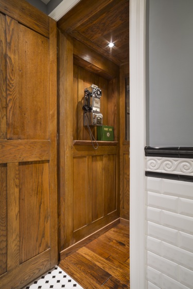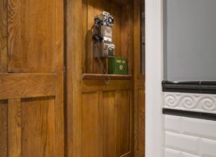 Through a vintage phone booth, of course!