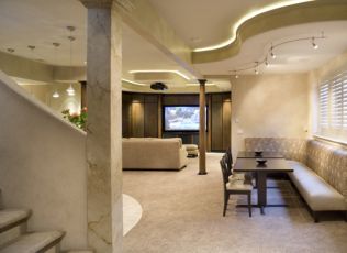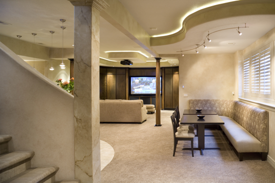sophisticated social entertainment as well as intimate family gatherings. A wireless home automation system controls