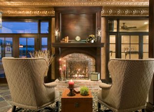 fireplace, a game area, an exercise room, access to the pool deck, or
