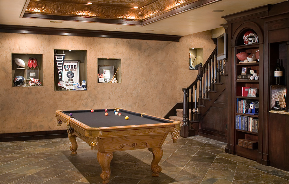 split staircase invites guests to choose billiards, a state-of-the-art