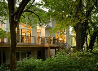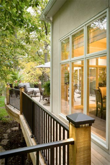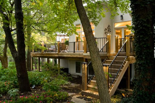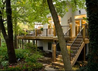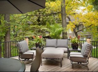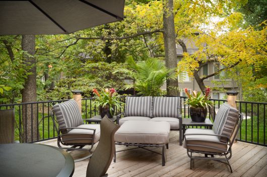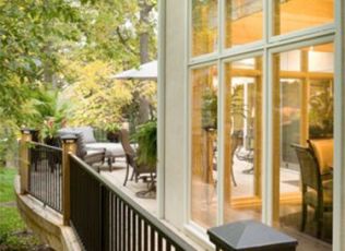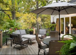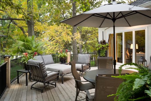 table (and at that it was cramped), the new deck, accessible from the TV room,
