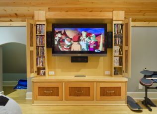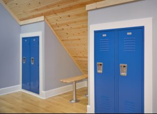 space runs down the length of one wall with "mouse hole" openings at each end,