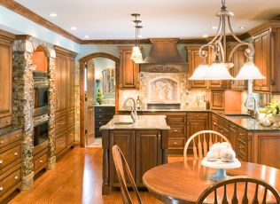 focal centers. In other rooms, hardwood floors, a hand-crafted alder fireplace